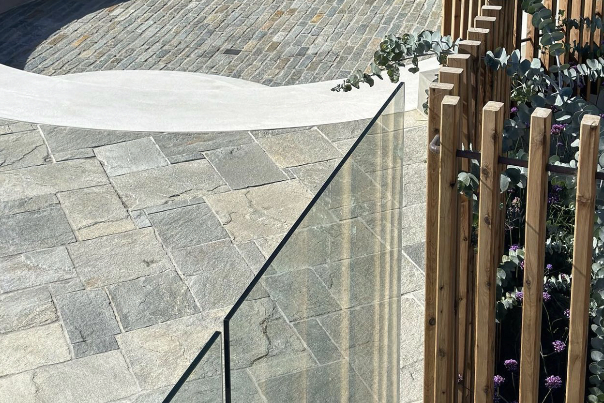 La Trobe, a naturally split, hard-wearing stone from Europe, provides a warm grey colour palette & can be used for outdoor & indoor designs.